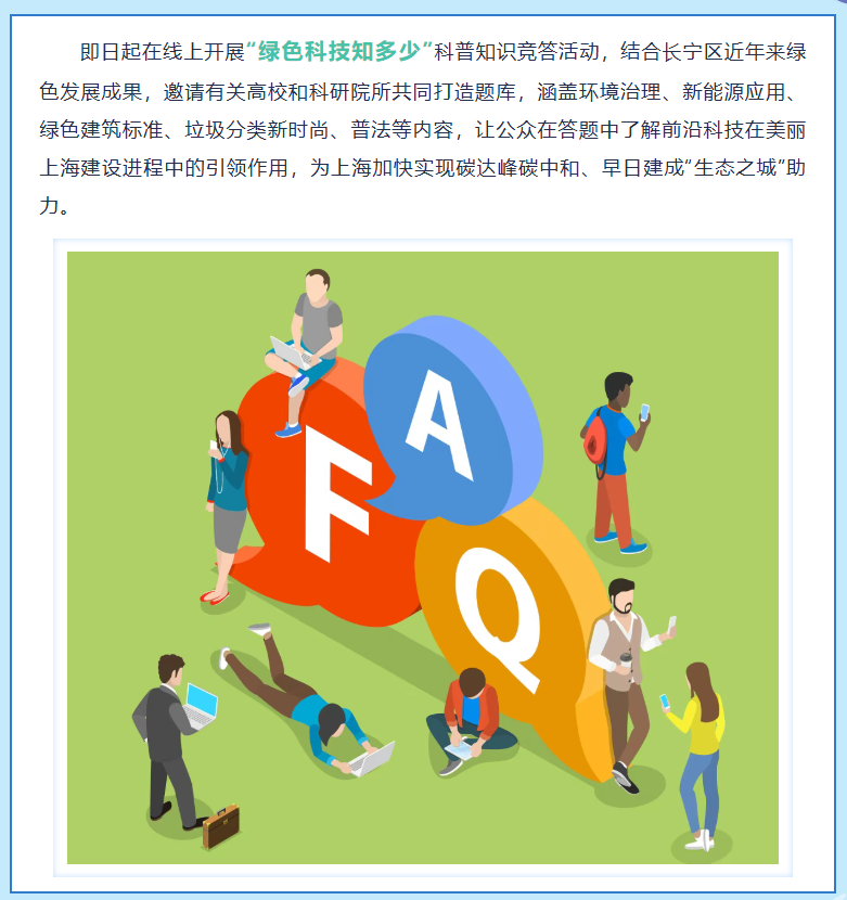 【有奖竞答】“绿色科技知多少”科普知识竞答活动长宁专场开始啦!